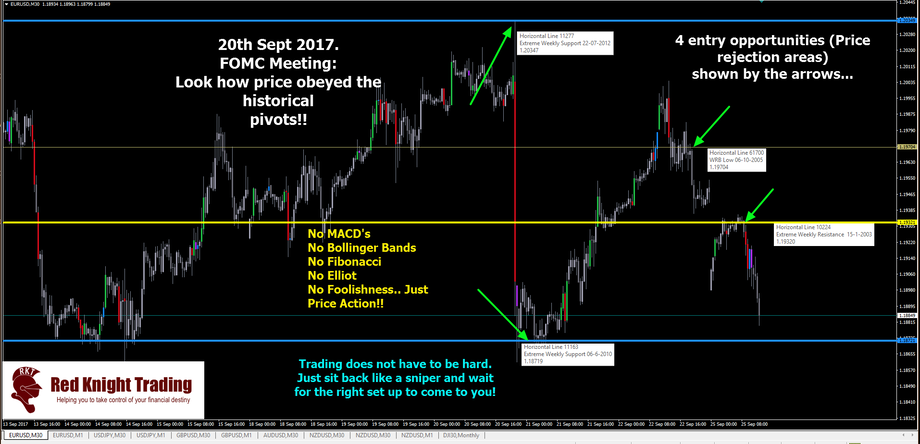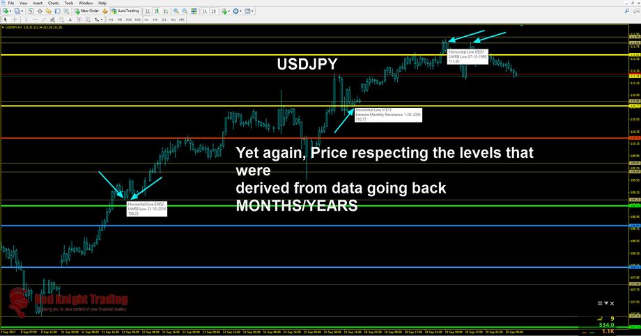 The Redknight Historical Power Levels was developed to help any new or seasoned trader to see with little effort where the banks and institutions are likely to conduct business. Let’s not forget that banks and financial trading institutions including their algorithms have determined areas of interest going back 30-40 years where they would like price to revisit, and the reason is they are continuously probing the markets for new buyers and sellers in these areas. I regularly see when Economic News comes out and price either shoots up 100 pips or tanks 100 pips and hits one of my Rednight Levels to the PIP then reverses off the level!